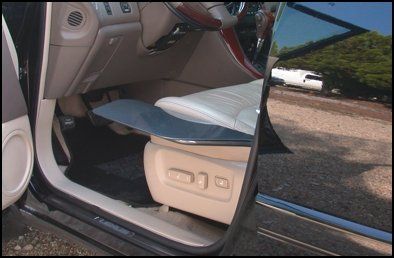 This device helps you to make a sideway transfer between a wheelchair and a car seat.